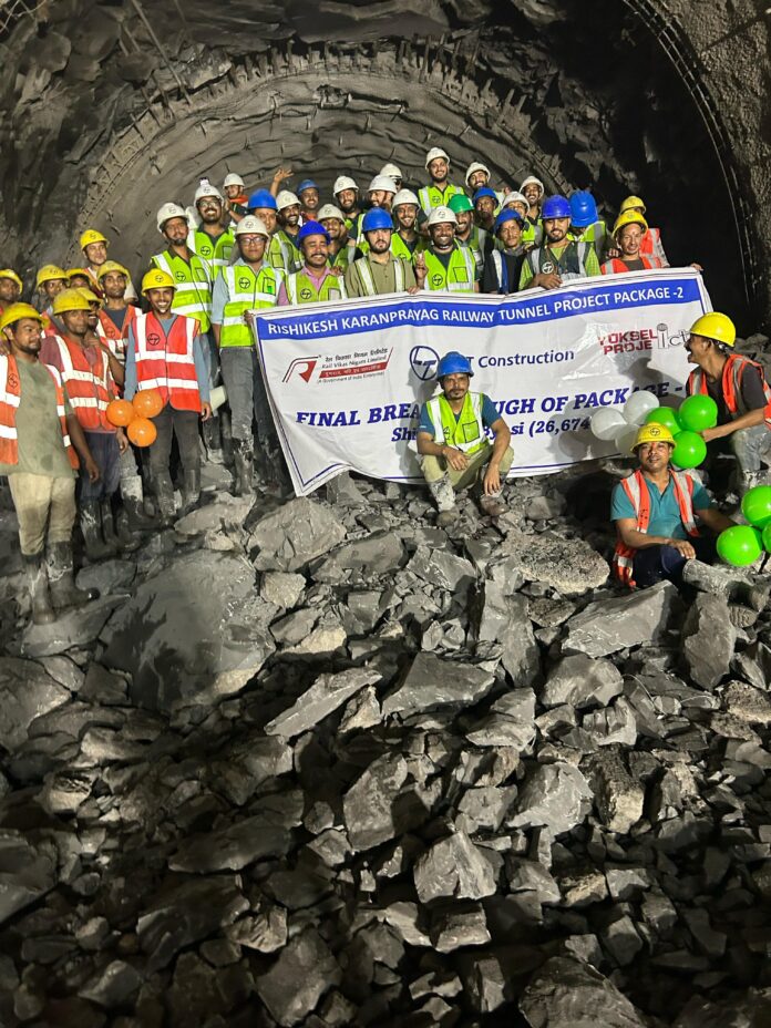 ऋषिकेश। देश की सबसे चुनौतीपूर्ण और रणनीतिक रूप से अहम रेल परियोजनाओं में से एक ऋषिकेश–कर्णप्रयाग ब्रॉड गेज रेल लाइन के पैकेज-2 में एलएंडटी ने ऐतिहासिक उपलब्धि हासिल की है। 6 जून 2025 को अंतिम सुरंग ब्रेकथ्रू को सफलतापूर्वक पूरा कर इस महत्त्वपूर्ण चरण को पार कर लिया गया।
